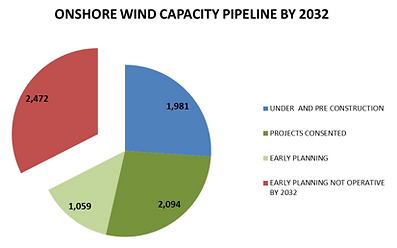 The data for the future capacity by 2032 is based in the Scottish government pipeline, who makes 3 distinctions: projects under construction, consented but awaiting construction and finally, in planning. We have made the assumption there will be live by 2032 the first two categories.